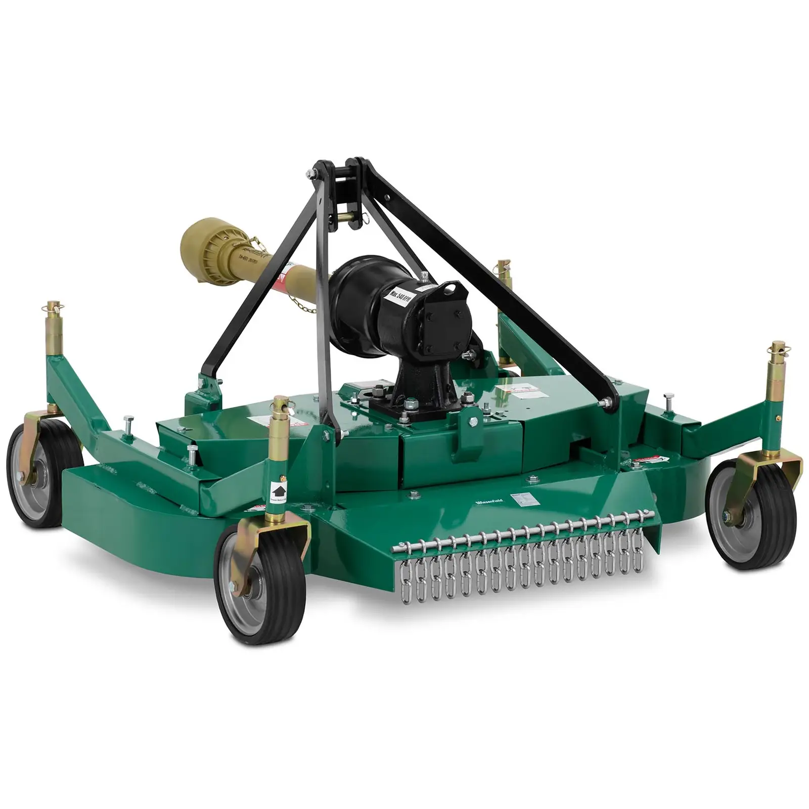 Rehottavatko viheralueidesi nurmikot jälleen valtoimenaan? Kiinnitä siinä tapauksessa tämä viherleikkuri WIE-FM-100 traktoriisi. Leikkurin avulla ylläpidät siistejä nurmikoita suuremmilakin viheralueilla, kuten puistoissa tai jalkapallokentillä. Neljä pehmeästi pyörivää pyörää kuljettavat leikkurin tarkasti ja turvallisesti ruohon yli ja leikkaavat sen tehokkaasti 117 cm:n leveydeltä. Wiesenfieldin ruohonleikkuri traktoriin leikkaa ruohon erityisen siististi. Lisäksi se on todella helppokäyttöinen, mikä tekee siitä oivallisen apuvälineen maastossa käytettäväksi. Voit kiinnittää ruohonleikkurin traktoriin kolmipistekiinnityksellä, minkä ansiosta sen ohjaaminen on tarkkaa ja turvallista. Leikkuri ottaa käyttövoimansa traktorista nivelakselin kautta, mikä takaa sen tehokkaan toiminnan. Pyörivä leikkuri on suunniteltu toimimaan nopeudella 540 r/min, jolloin sen kolme halkaisijaltaan 40,3 cm suurta terää saavuttavat tehokkaan leikkuunopeuden. Tuloksena on optimoitu hienoleikkaus, joka ohjaa leikatun ruohon siististi koneen taakse. Näin ruohoalueesi näyttävät moitteettomilta ja leikkuujätteet kuivuvat tehokkaasti. Tämä viherleikkuri on suunniteltu pienille traktoreille, joiden teho on 18-25 hv. Kasvillisuudesta ja maastosta riippuen voit säätää leikkuukorkeutta pyörien avulla välillä 4 – 11 cm. Suuret kumipyörät takaavat erinomaisen ohjattavuuden ja kulkevat hellävaraisesti käsiteltävän maaperän ylitse. Mutkaton kiinnitys takaa, että leikkuri on nopea kiinnittää traktoriin ja täten hetkessä käyttövalmis.