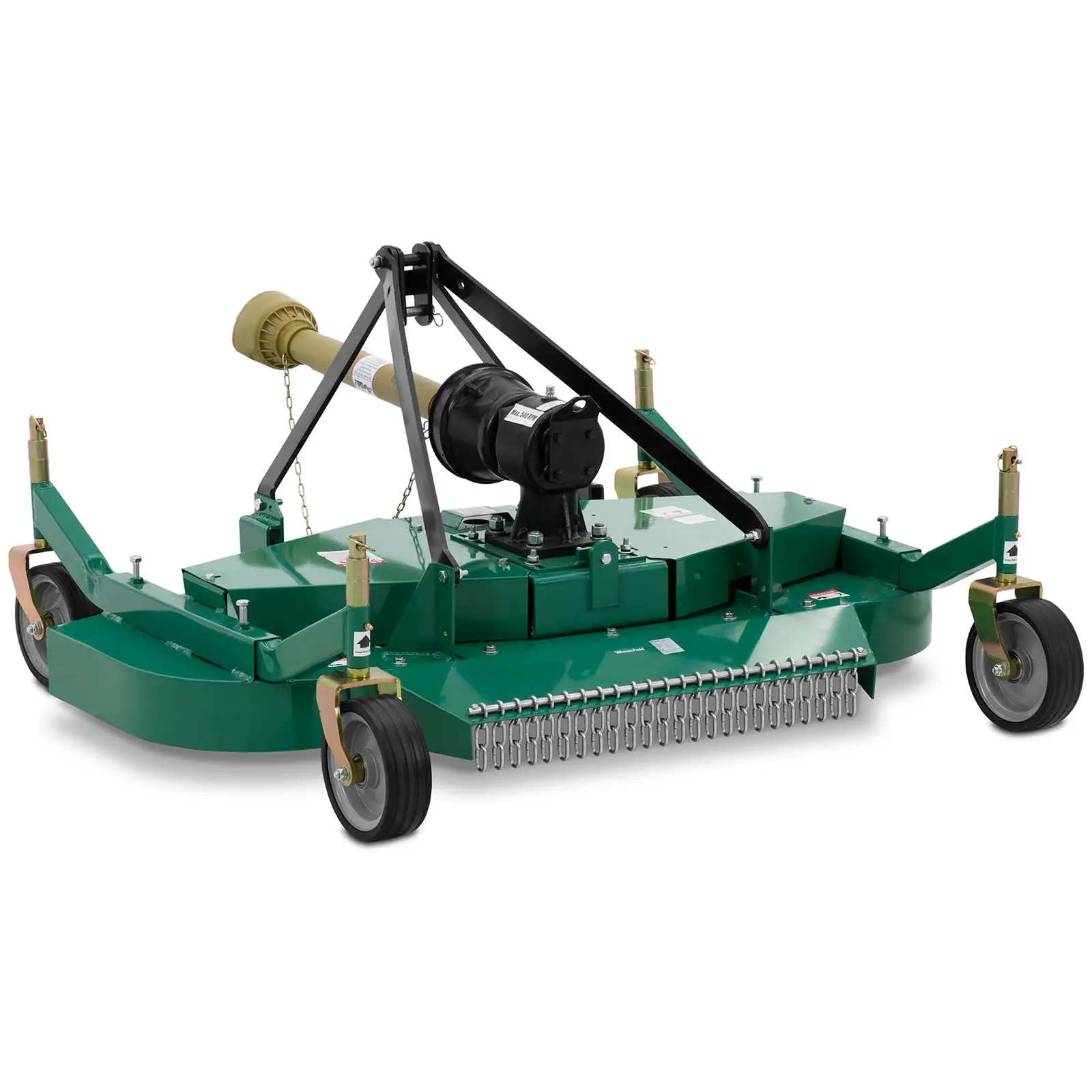 Rehottavatko viheralueidesi nurmikot jälleen valtoimenaan? Kiinnitä siinä tapauksessa tämä viherleikkuri WIE-FM-101 traktoriisi. Leikkurin avulla ylläpidät siistejä nurmikoita suuremmilakin viheralueilla, kuten puistoissa tai jalkapallokentillä. Neljä pehmeästi pyörivää pyörää kuljettavat leikkurin tarkasti ja turvallisesti ruohon yli ja leikkaavat sen tehokkaasti 150 cm:n leveydeltä. Wiesenfieldin ruohonleikkuri traktoriin leikkaa ruohon erityisen siististi. Lisäksi se on todella helppokäyttöinen, mikä tekee siitä oivallisen apuvälineen maastossa käytettäväksi. Voit kiinnittää ruohonleikkurin traktoriin kolmipistekiinnityksellä, minkä ansiosta sen ohjaaminen on tarkkaa ja turvallista. Leikkuri ottaa käyttövoimansa traktorista nivelakselin kautta, mikä takaa sen tehokkaan toiminnan. Pyörivä leikkuri on suunniteltu toimimaan nopeudella 540 r/min, jolloin sen kolme halkaisijaltaan 60 cm suurta terää saavuttavat tehokkaan leikkuunopeuden. Tuloksena on optimoitu hienoleikkaus, joka ohjaa leikatun ruohon siististi koneen taakse. Näin ruohoalueesi näyttävät moitteettomilta ja leikkuujätteet kuivuvat tehokkaasti. Tämä viherleikkuri on suunniteltu pienille traktoreille, joiden teho on 20-30 hv. Kasvillisuudesta ja maastosta riippuen voit säätää leikkuukorkeutta pyörien avulla välillä 4 – 11 cm. Suuret kumipyörät takaavat erinomaisen ohjattavuuden ja kulkevat hellävaraisesti käsiteltävän maaperän ylitse. Mutkaton kiinnitys takaa, että leikkuri on nopea kiinnittää traktoriin ja täten hetkessä käyttövalmis.