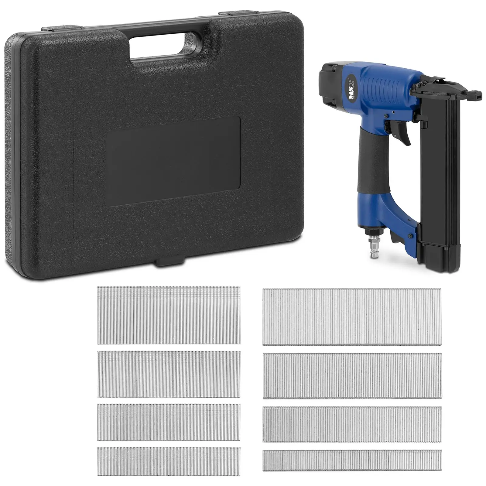 MSW:n ammattimainen viimeistelynaulain säästää aikaa ja lihasvoimaa rakennustyömailla, teollisuudessa ja yksityisissä projekteissa. Monipuoliset käyttökohteet vaihtelevat katto- ja julkisivutöistä sisätilojen viimeistelyyn ja huonekalujen valmistukseen tai verhoiluun. Monenlaisten vaatimusten täyttämiseksi naulain sisältää naulasyvyyden säädön ja toimii eripituisilla nauloilla (15 / 25 / 32 / 40 / 50 mm). Suurimmalla sallitulla paineella 120 psi tai 8,27 bar, suositellulla painealuella 60 – 100 psi tai 4,14 – 6,89 bar ja ilmankulutuksella 68 l/min naulain tarjoaa erittäin korkean suorituskyvyn. Vakioliitännällä 1/4” PT voit helposti liittää laitteen kompressoriin tavallisten liitäntäletkujen avulla. Säädettävän ilmanpoiston ansiosta voit työskennellä siististi ja mukavasti. Pehmeä kahva ja integroitu iskunvaimennus takaavat myös ergonomisen ja kevyen käytön. Paineilmanaulain jopa 100 naulaa vetävällä lippaalla toimii luotettavasti ja tasaisesti pitkiäkin aikoja. Pikakiinnityksen ansiosta uusien naulojen täyttö ja tukosten poistaminen on helppoa. Tässä tehokkaassa paineilmatyökalussa on myös kaikki mitä tarvitset turvalliseen säilytykseen ja huoltoon: itse naulapyssyn lisäksi toimitukseen sisältyy kolme kuusiokoloavainta, öljysäiliö ja käytännöllinen kantolaukku.