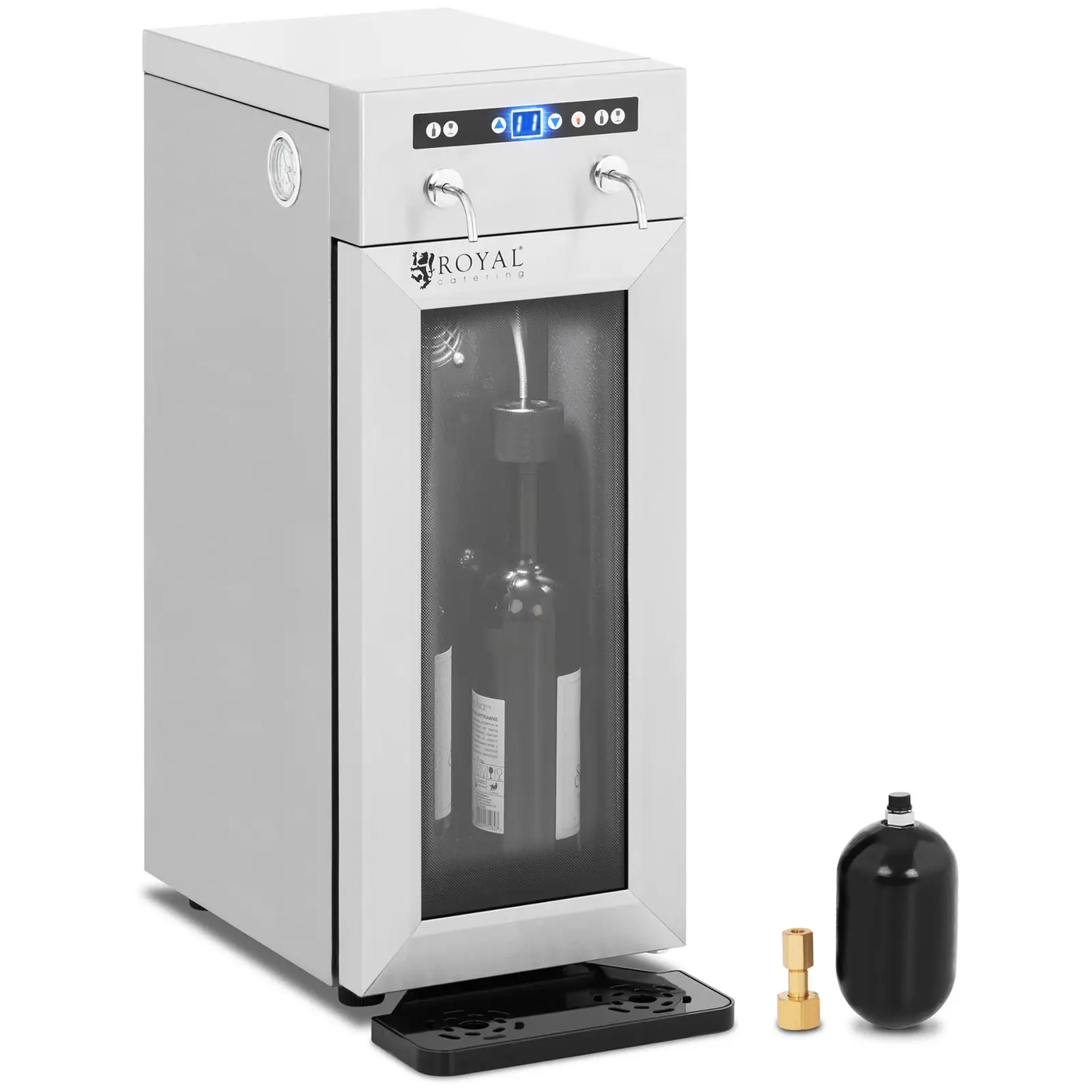 Viinikaapilla temperoit ja säilytät viinisi asianmukaisesti. Lisäksi annostelijan ansiostavoit hoitaa tarjoilunkin kätevästi ja esittää ne valkoisen LED-valaistuksen ansiosta ihanteellisesti. Tämä viinikaappi integroidulla annostelijalla on täydellinen lisä baariisi joko kodissasi tai joustavasti käytettävissä niin hotellissa, kahvilassa kuin ravintolassakin. Viinikaappi tarjoaa asianmukaisen säilytyksen kahdelle viinipullolle. Viinikaapin lämpötila voidaan säätää LC-näytöltä tarkasti 7 – 18 °C välille – ihanteellinen viini-ja roséviinille – ja voit pitää näytöltä lämpötilaa silmällä. Sisään rakennettu viiniannostelija varmistaa viinien siistin ja kätevän ottamisen ilman viinikaapin avaamista. Annosteltava määrä voidaan asettaa tarkasti välille 1-99 ml. Toimitussisältöön kuuluu helppokäyttöinen, täytettävä kaasupatruuna. Viinikaapin toinen etu on, että arvokkaat juomat säilyttävät maunsa ja laadunsa jopa 30 päivän ajan pullojen avaamisesta huolimatta. Optisena kohokohtana toimii ennen kaikkea LED-valaistus. Tällä tavalla viinipullot voidaan asettaa kauniisti esille. Viinikaapissa on erillinen ovi, joka koostuu karkaistusta lasista. Tämä voidaan avata ja sulkea varovasti. Loppu kotelo on valmistettu ruostumattomasta teräksestä muovielementeillä, joita on käytetty säästeliäästi ja vain tarvittaessa, mikä tarkoittaa, että laite näyttää samaan aikaan niin houkuttelevalta kuin kestävältä ja pitkäikäiseltäkin. Lisäksi jääkaappi aiheuttaa desibelillään vähemmän melua kuin pehmeästi kehräävä kissa. Erittäin matalan melutason ansiosta jääkaappi on ihanteellinen tiloihin, joissa oleskellaan ja joissa vieraasi haluavat olla rauhassa tai keskittyä työskentelyyn.