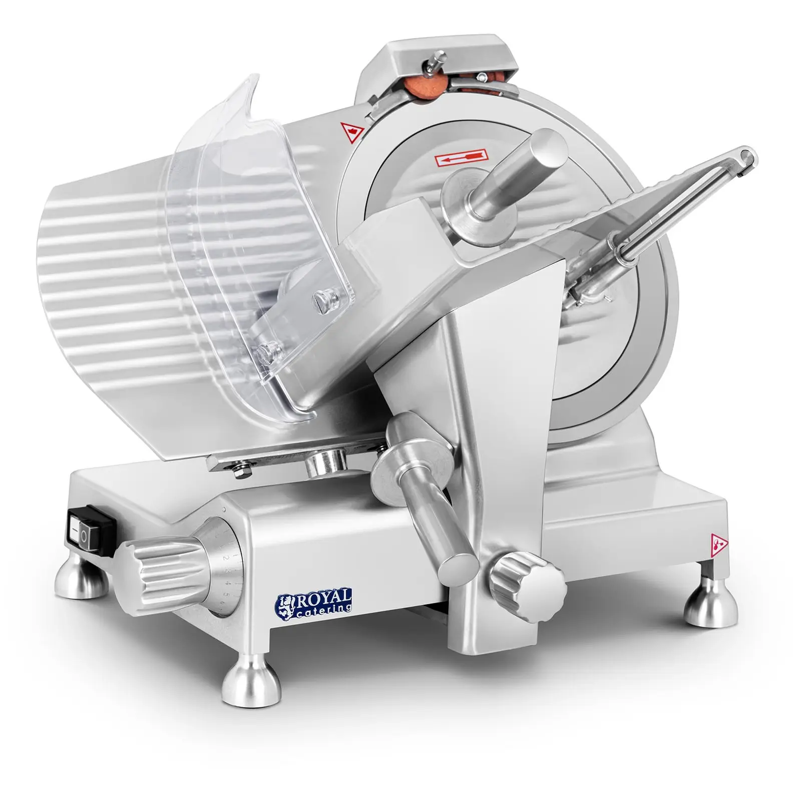 Royal Cateringin RCAM 300EXPERT -siivutuskone suunniteltiin ammattimaista käyttöä varten. Siivutuskone on valmistettu korkealaatuisesta, anodisoidusta alumiinista ja kestää hyvin ympäristövaikutuksia. Expert-sarja kehitettiin erityisesti korkeaa vaatimustasoa ajatellen. Laitteen paino takaa sen vakauden. Kaikki kahvat ovat korkealaatuista alumiinia. Leikkuun paksuutta voi säätää portaattomasti välillä 0 – 15 mm. Toisin kuin osa kilpailijoistamme, mainitsemme vain todellisen säätövälin. RCAM 300EXPERT -siivutuskoneen leikkuuterä on halkaisijaltaan 30 cm. Halkaisija on ihanteellinen myytävien tuotteiden ammattimaista ja asianmukaista leikkaamista ajatellen. Laite toimii tehokkaalla 280 W moottorilla. Laitteen kuori on tehty alumiiniseoksesta, joka soveltuu käytettäväksi lihan ja muiden elintarvikkeiden käsittelyssä. Anonisoidusta alumiinista valmistettu pinta takaa helpon puhdistamisen ja kaikenlaisten elintarvikkeiden vaivattoman käsittelyn. Kuula- ja liukulaakerien yhdistelmä takaa sen, että laite on helppokäyttöinen ja lähes äänetön, ja ettei sen käytössä tarvita paljoa voimaa. Laakerit ovat erityisen pitkäikäisiä. Yksi RCAM 300EXPERT -siivutuskoneen eduista on integroitu puoliautomaattinen teroittaja erikoisteräksestä valmistettuja leikkuuteriä varten. Heti kun terä alkaa tylsyä, voit käynnistää teroituksen.