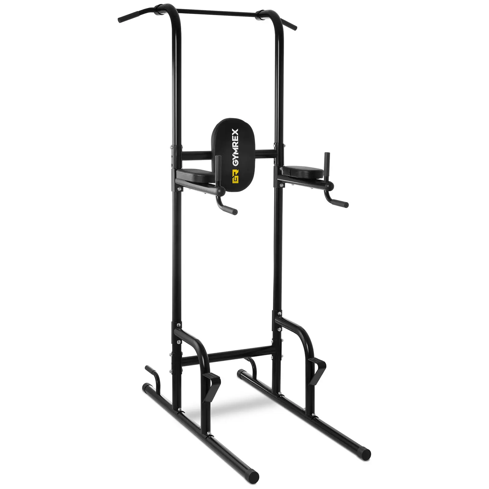 Ylävartalo ja core-harjoittelu ovat urheilullisen vartalon perusedellytys. Vahvista ylävartalon lihaksiasi voimatornilla GR-PT50 ja saavuta unelmiesi vartalo. Leuanveto- ja dippiasema yhdistää yhteensä neljä erilaista kuntolaitetta ja mahdollistaa ihanteelliset tulokset vain vähän tilaa vieden. Täten voit harjoittaa tällä yhdellä monitoimilaitteella suuren määrän eri harjoituksia, jotka kattavat kaikki lihasryhmät. Urheilu & terveys ovat aina tärkeämpiä elämässämme – tasapainottamaan arkea sekä ennalta ehkäisemään sairauksia. Tästä syystä Gymrex tarjoaa sinulle laadukkaita kuntoilulaitteita. Voimakeskuksella GR-PT50 voit suorittaa reilusti yli 30 erilaista lihasharjoitusta. Torni voidaan kuormittaa jopa 110 kg asti ja se takaa laitteen vankkuuden. Dipit ja muut harjoitukset, kuten jalkojen nosto roikkuen voidaan tehdä monella eri tavalla, jolloin vatsa- ja hartialihasten ohella myös käsivarsi-, rinta-, selkä-, ja jalkalihakset harjoittuvat. Punnerrus tuella punnerrat ranteita säästäen. Korotetun asennon takia liikkeenrata on suurempi ja liikkeen voi tehdä myös vaakatason alapuolella. Näin vahvistat ennen kaikkea rintalihaksiasi tehokkaammin kuin lattialla punnertaen. Mutta myös muut lihasryhmät kuormittuvat näin voimakkaammin ja harjoittuvat tehokkaammin. Leuanvetotangolla oma painosi toimii vastuksena. Tämä harjoitus kuormittaa erityisen montaa lihasryhmää kerralla, erityisesti leveää selkälihasta ja käsivarsia. Otetta vaihtamalla voit harjoittaa eri lihasryhmiä. Leveän selkälihaksen lisäksi myös epäkäslihaksen, suuren ja pienen suunnikaslihaksen sekä ison liereälihaksen alemmat lihassyyt kuormittuvat tehokkaasti. Istuin ja selkänoja on pehmustettu mukavaksi ja päällystetty PVC-nahalla. Tämä materiaali on erittäin kestävä ja helppo puhdistaa. Voimatornin runko on lujatekoista terästä. Lisäksi laite on suhteellisen helppo koota.