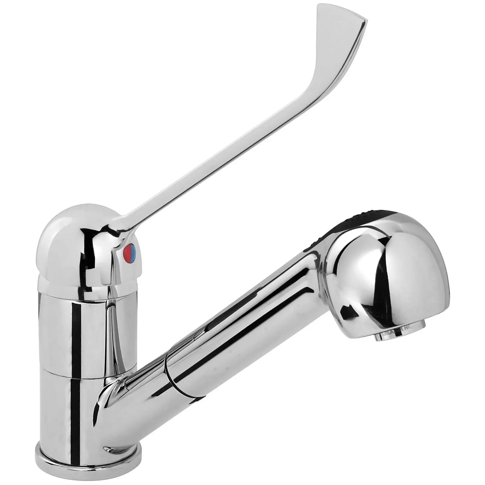 MO-TA-15 yksivipuinen tekee yhdellä kädellä käytettävällä kylmä- ja lämminvesisekoittajallaan sekä 1200 mm:n, sisäänrakennetulla letkullaan pesuaskareista miellyttäviä. Kotitalouksissa tai ravintoloissa, kouluissa ja monilla muilla käyttöalueilla: Joustavan suihkuosan ja sekoittajan yhdistelmä helpottaa työskentelyä ja varmistaa puhtaat tulokset. Keittiöhana yksiotesekoittajalla on suunniteltu vedentulon ja lämpötilan helppoon säätöön. Joustava letku, joka voidaan vetää ulos 215 mm pitkästä hanasta, tarjoaa mukavuutta ja hygieniaa. Yhdistelmä mahdollistaa tehokkaan työskentelyn, jolloin suihkua voidaan käyttää tarvittaessa. Kromattu messinki on valittu keittiöhanan materiaaliksi sen tarjoamien lukuisten etujen vuoksi: Sileä ja helposti puhdistettava pinta takaa hygieenisen ja vaivattoman työskentelyn haastavissakin tilanteissa. Samanaikaisesti tämä materiaali on erityisen kestävä ja tarjoaa yhdessä erinomaisen työstön kanssa erityisen pitkän käyttöiän. G3 / 8 ”-liitännän kautta asennus on hyvin yksinkertaista ja intuitiivista, minkä jokainen osaa suorittaa ongelmitta. Pesuhanan asentamiseksi tarvitaan vain vastaava, halkaisijaltaan vähintään 30 mm aukko pesualtaassa.